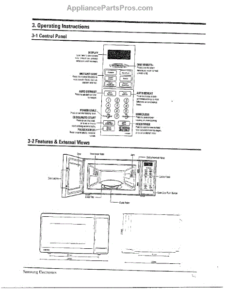 Parts for Samsung MW5580W/XAA: Oven Operating / Control Panel / Views Parts