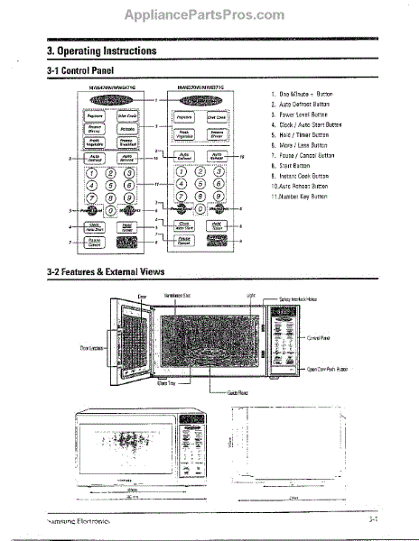 Parts for Samsung MW6371G/XAA: Oven Operating Instructions Parts