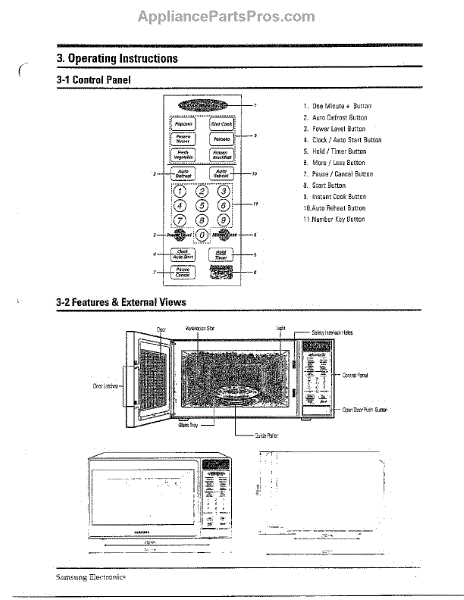 Parts for Samsung MW6580W/XAA: Oven Operating Instructions Parts