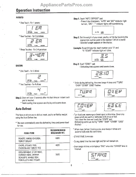 Parts for Samsung MW5330T/XAA: Oven Operation Instruction Page 3 Parts