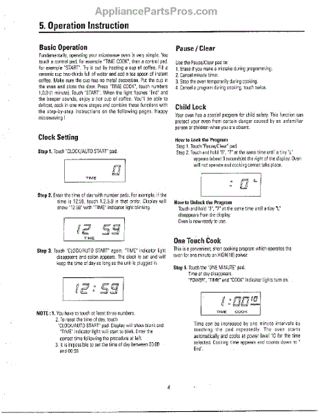 Parts for Samsung MW5330T/XAA: Oven Operation Instruction Parts