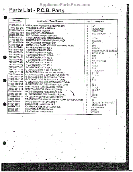 Parts for Samsung MW3530W/XAA: Oven P.C.B. Circuit Parts