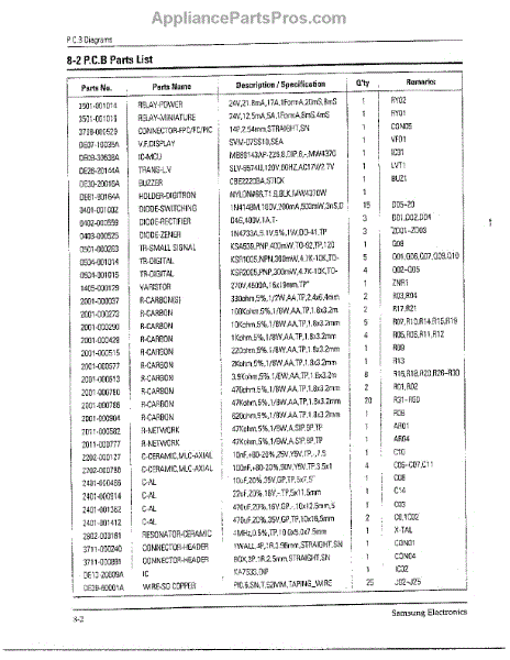 Parts for Samsung MW5580W/XAA: Oven P.C.B Parts