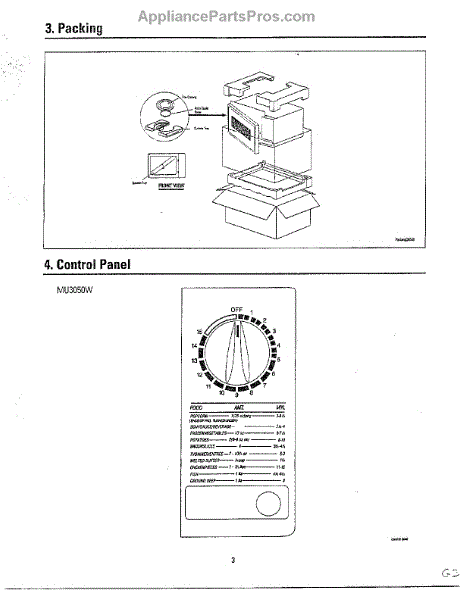 Parts for Samsung MU3050W/XAA: Oven Packing / Control Panel Parts