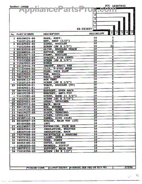 This factory screw secures appliance components to their mounting points. Replace missing, worn, or stripped hardware to restore a tight fit, proper alignment, and quieter operation across the affected assembly.