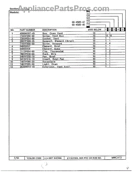 Parts for Magic Chef 68-4585-40: Oven Page 2 Parts