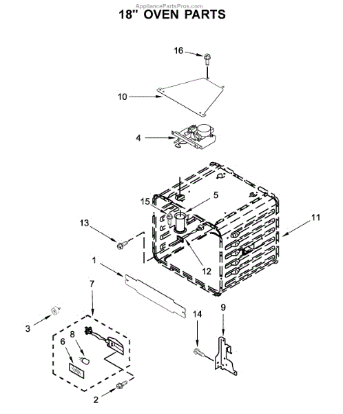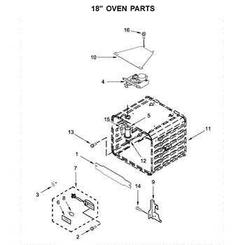 Door hinge receiver for wall ovens. Mounts inside the oven frame to hold the door hinge in place. Replace if cracked, deformed, or causing door alignment issues.