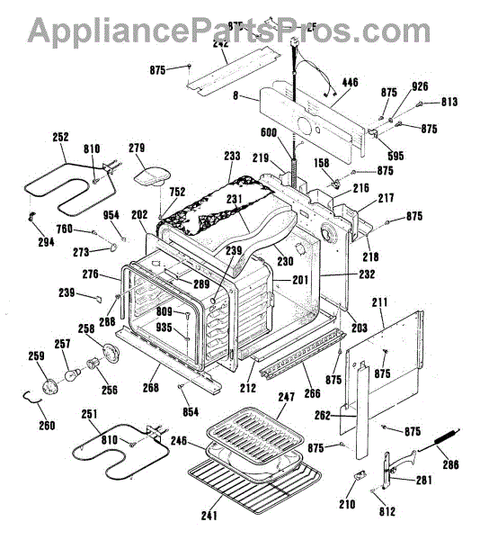 This Back main is the oven's rear chassis panel that supports internal components and protects wiring. It restores structural support and helps prevent contact with hot or moving parts for safe operation. What it does: