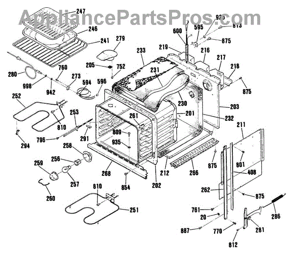 This Back main is the oven's rear chassis panel that supports internal components and protects wiring. It restores structural support and helps prevent contact with hot or moving parts for safe operation. What it does: