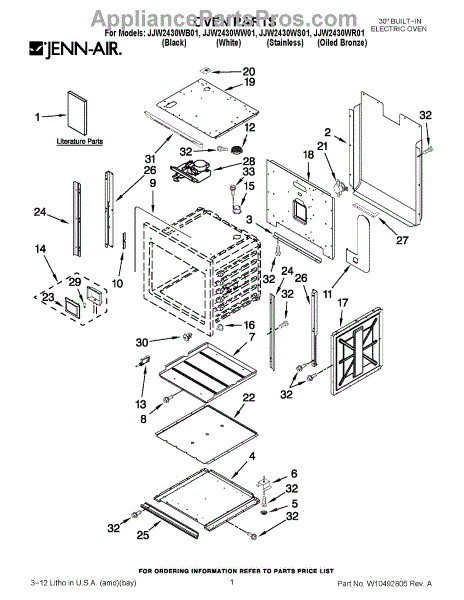 Parts for Jenn-Air JJW2430WR01: 01 - Oven Parts