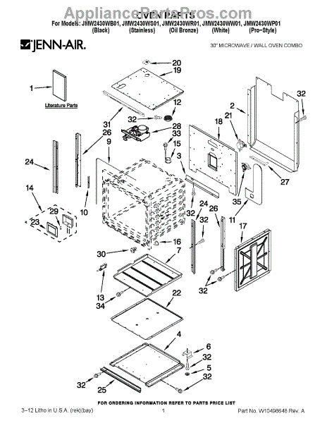 Parts for Jenn-Air JMW2430WR01: 01 - Oven Parts