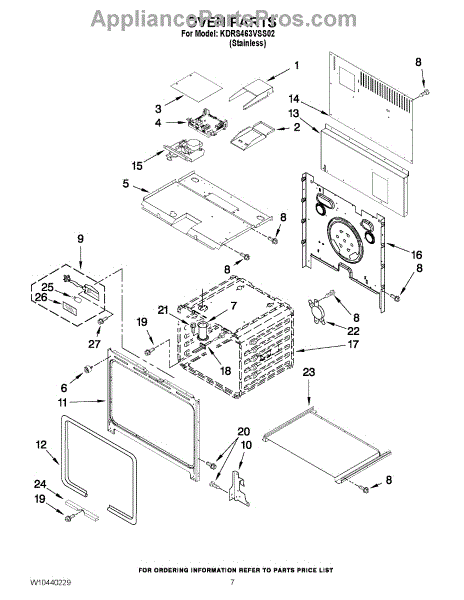This factory screw secures appliance components to their mounting points. Replace missing, worn, or stripped hardware to restore a tight fit, proper alignment, and quieter operation across the affected assembly.