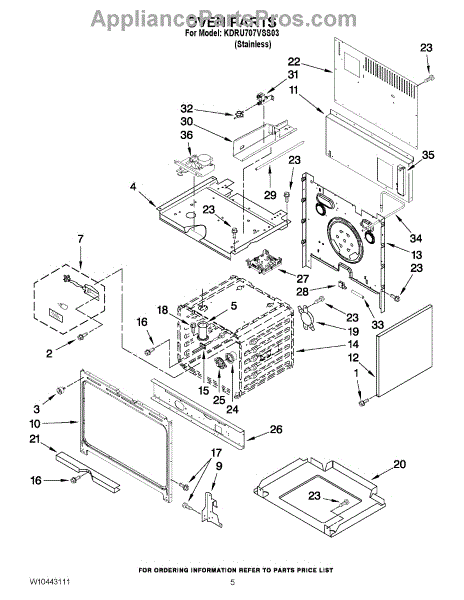 This factory screw secures appliance components to their mounting points. Replace missing, worn, or stripped hardware to restore a tight fit, proper alignment, and quieter operation across the affected assembly.