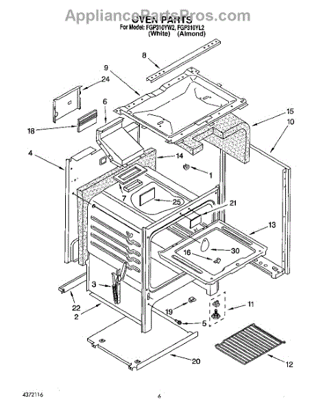 Parts for Whirlpool FGP310YL2: 04 - Oven Parts