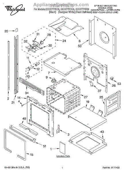 Parts for Whirlpool GBD277PDB3: 01 - Oven, Literature Parts