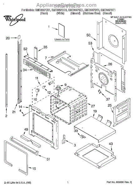 Parts for Whirlpool GMC305PDQ1: 01 - Oven, Literature Parts