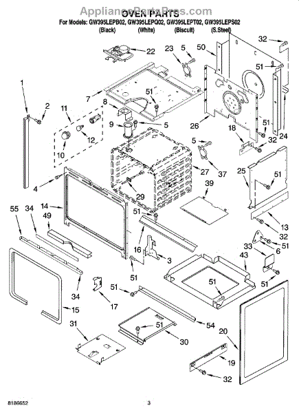 Parts for Whirlpool GW395LEPT02: 03 - Oven Parts