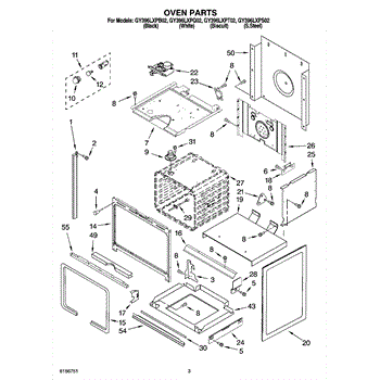 Parts for Whirlpool GY396LXPT02: 03 - Oven Parts
