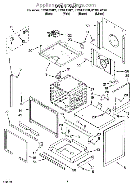 Parts for Whirlpool GY398LXPB01: 03 - Oven Parts