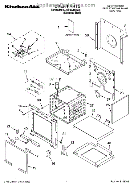 Parts for Kitchenaid KDRP407HSS06: 01 - Oven Parts