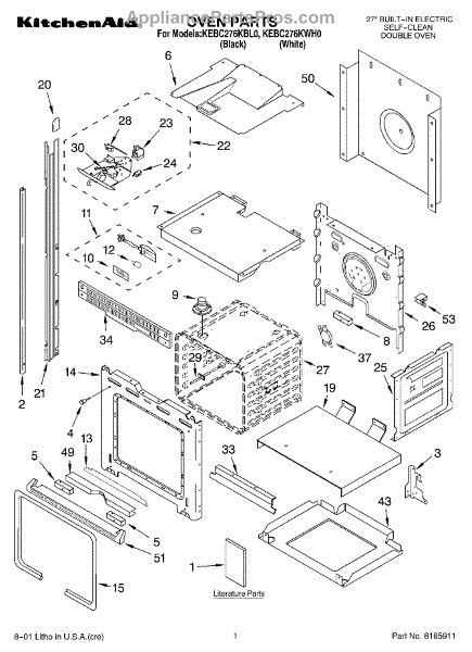 Parts for Kitchenaid KEBC276KWH0: 01 - Oven, Literature Parts