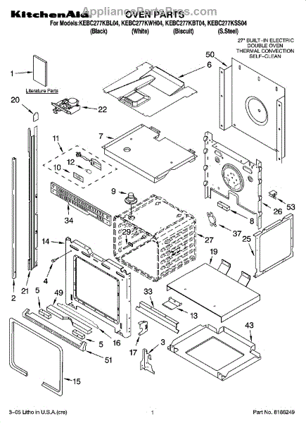 Parts for Kitchenaid KEBC277KWH04: 01 - Oven Parts
