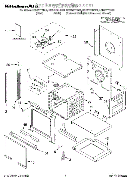 Parts for Kitchenaid KEBS177DWH9: 01 - Oven, Literature Parts
