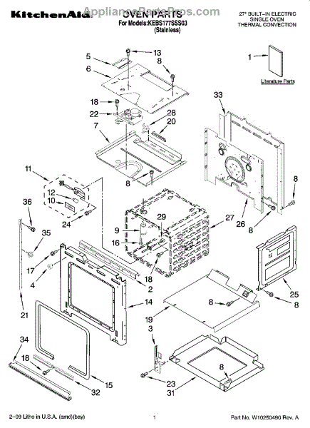 Parts for Kitchenaid KEBS177SSS03: 01 - Oven Parts