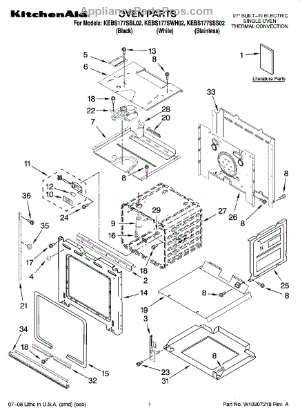 Parts for Kitchenaid KEBS177SWH02: 01 - Oven Parts