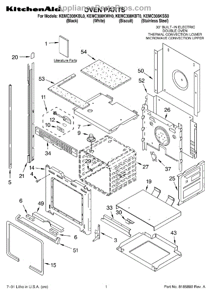 Parts for Kitchenaid KEMC308KWH0: 01 - Oven, Literature Parts