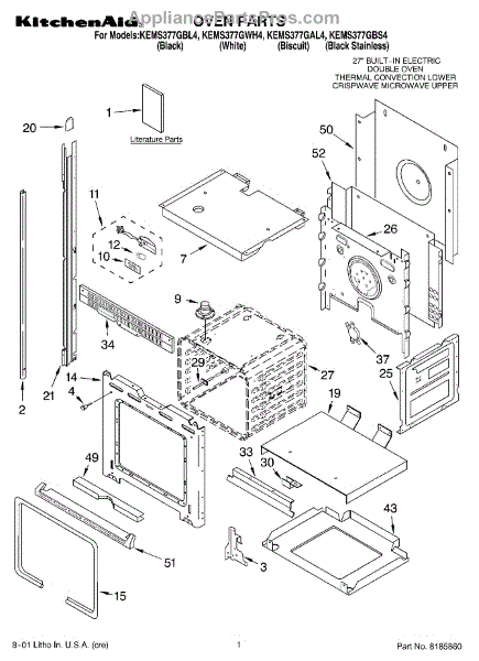 Parts for Kitchenaid KEMS377GBS4: 01 - Oven, Literature Parts