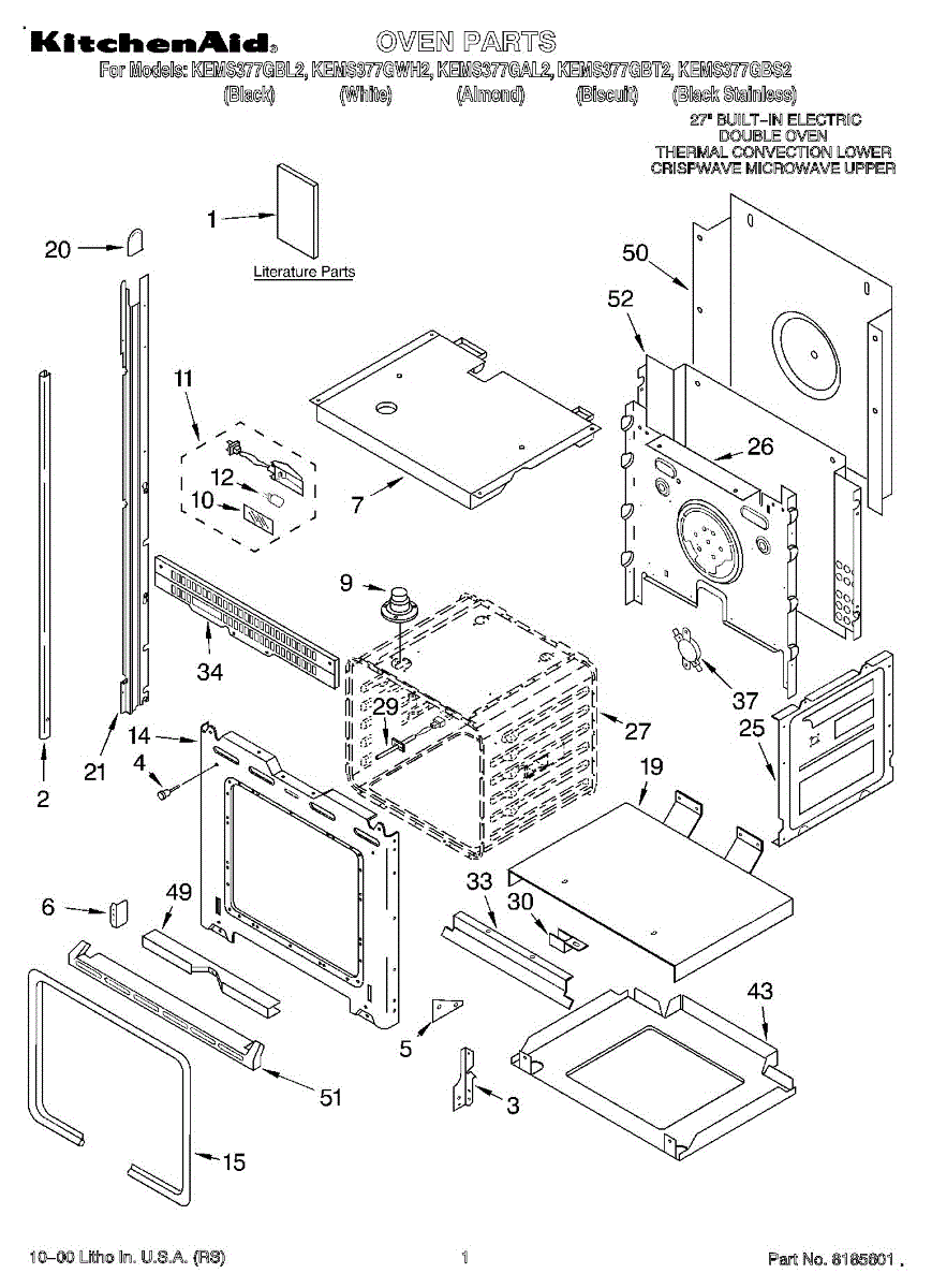 Parts for Kitchenaid KEMS377GBT2: 01 - Oven, Literature Parts