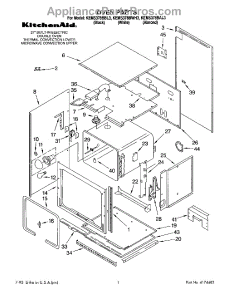 Parts for Kitchenaid KEMS378BBL3: 01 - Oven Parts