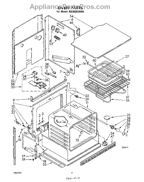 Parts for Whirlpool RB2600XKW0: 04 - Oven Parts