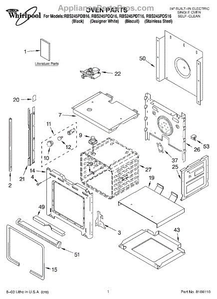 Parts for Whirlpool RBS245PDQ16: 01 - Oven Parts