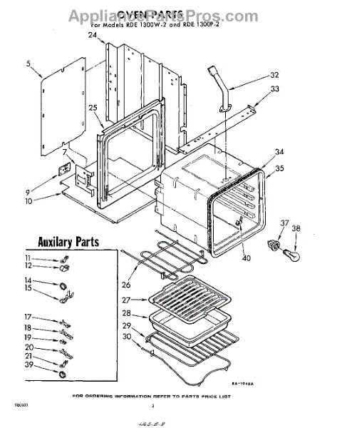Parts for Whirlpool RDE1300W2: 02 - Oven Parts