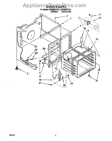 Parts for Whirlpool RF330PXYN1: 03 - Oven Parts