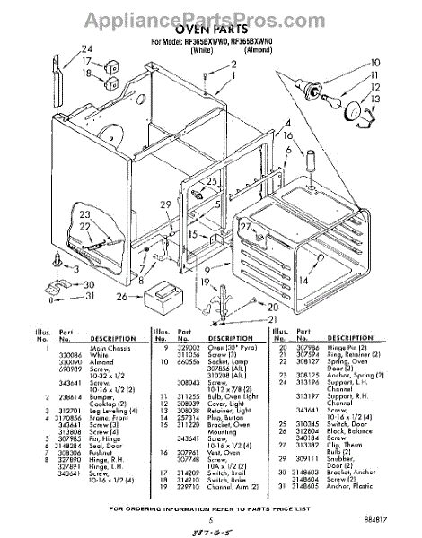Parts for Whirlpool RF365BXWN0: 05 - Oven Parts