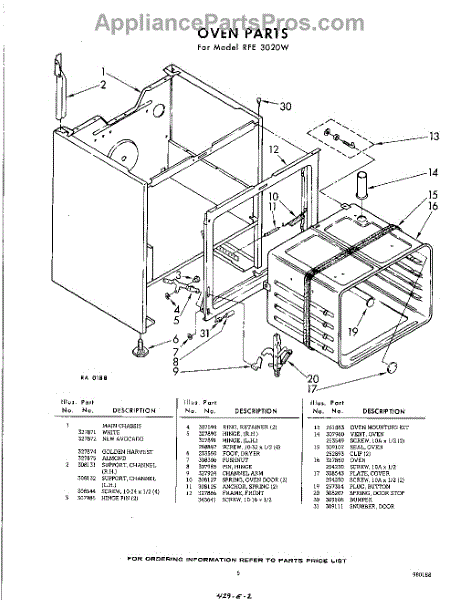 Parts for Whirlpool RFE3020W: 05 - Oven Parts