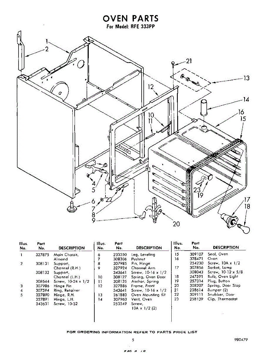Parts for Whirlpool RFE333PP: 05 - Oven Parts