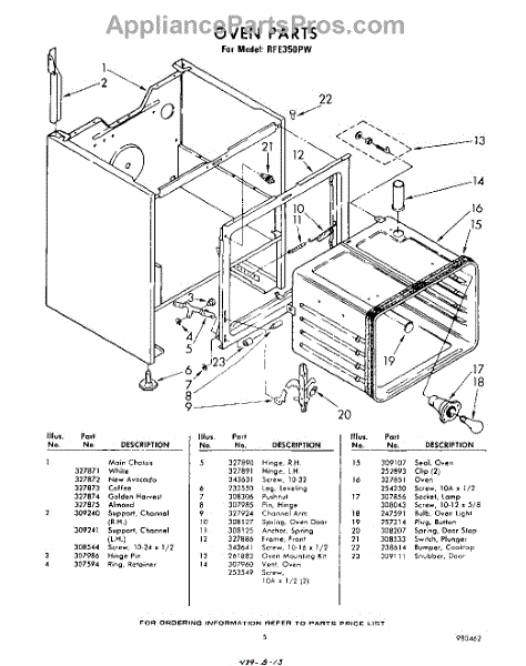 Parts for Whirlpool RFE350PW: 05 - Oven Parts