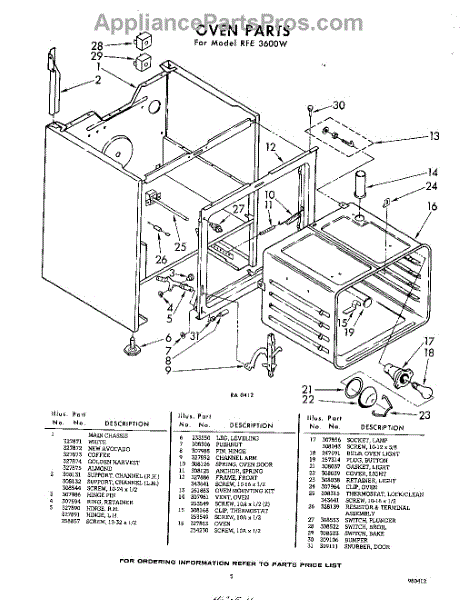 Parts for Whirlpool RFE3600W: 05 - Oven Parts
