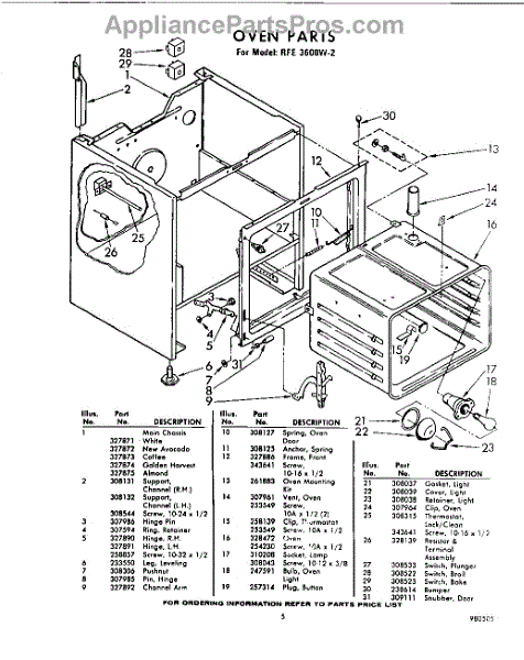 Parts for Whirlpool RFE3600W2: 05 - Oven Parts