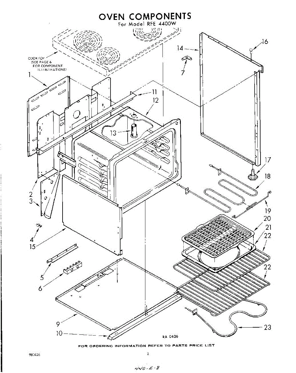 Parts for Whirlpool RFE4400W: 02 - Oven Parts