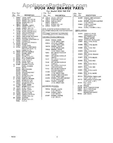 Parts for RGE960PW