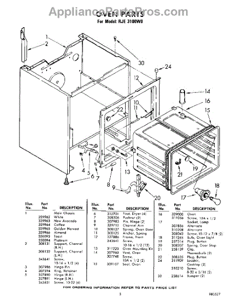 Parts for Whirlpool RJE3100W0: 05 - Oven Parts