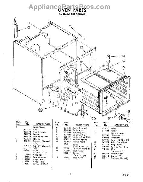 Parts for Whirlpool RJE3160W0: 05 - Oven Parts