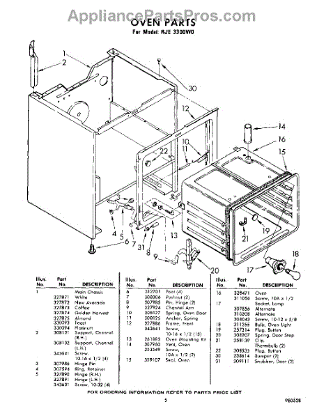 Parts for Whirlpool RJE3300W0: 05 - Oven Parts