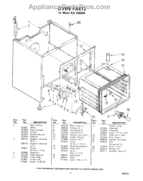 Parts for Whirlpool RJE3360W0: 05 - Oven Parts