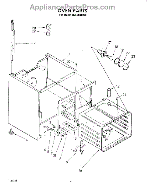 Parts for Whirlpool RJE360BW0: 04 - Oven Parts